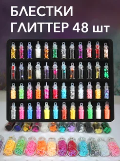 Блестки глиттер в колбах 48 шт для творчества и маникюра