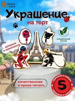Украшения для торта съедобные Леди Баг и Супер Кот 5 штук