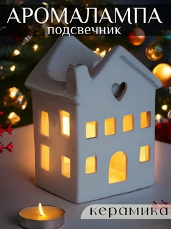 Аромалампа подсвечник новогодний Домик 12 см керамическая