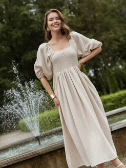 Платье летнее из хлопка тонкое ниже колена