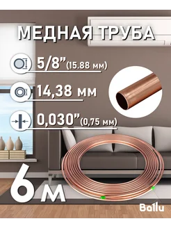 Труба медная 5 8" (15,88 мм) 6 метров Olympic