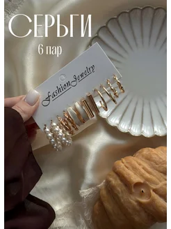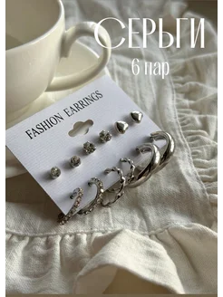 Серьги бижутерия набор кольца 6 пар