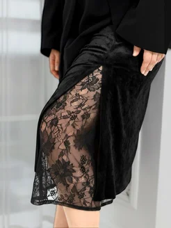 Велюровая юбка миди с разрезом