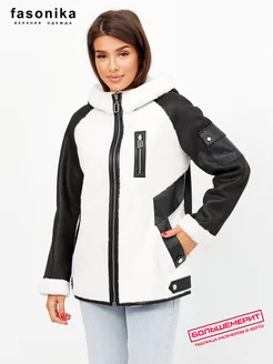 Зимняя куртка оверсайз с меховым капюшоном искусственный мех