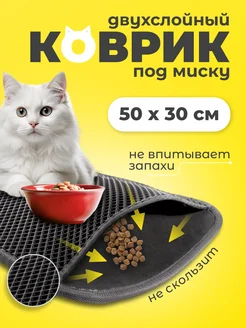 Коврик под лоток и под миску для кошек и собак двухслойный