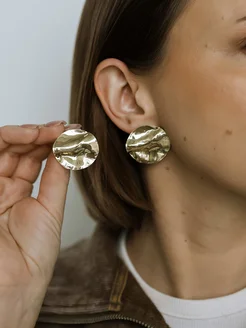 Серьги массивные мятый металл