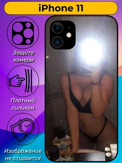 Чехол на iPhone 11 с принтом защитой камеры с надписью