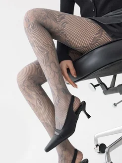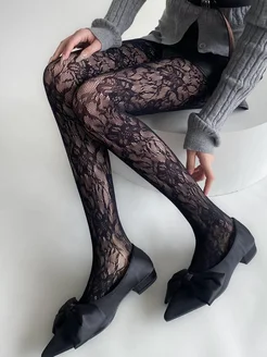 Колготки в сетку с цветочным узором