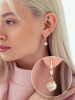 Серьги с жемчугом серебро с позолотой