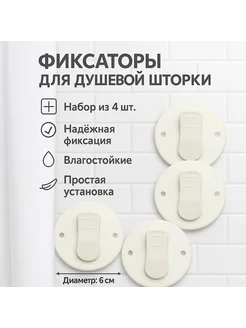 Зажим- прищепка держатель для шторы в ванной 4 шт
