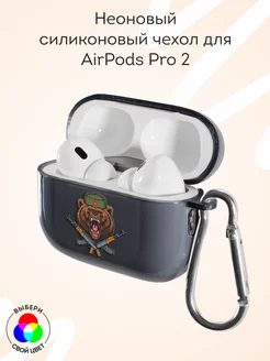 Чехол на AirPods Pro и Pro 2 неоновый с принтом Медведь