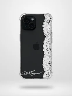 Прозрачный чехол на iPhone 15 белый принт кружева pinterest