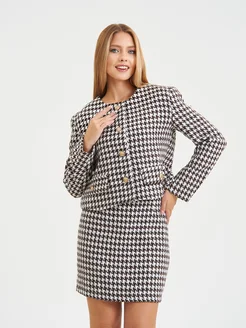 Костюм пиджак юбка теплый в клетку