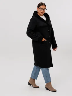Дубленка еврозима с капюшоном. Демисезонное пальто длинное