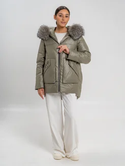 Пуховик короткий стеганый с мехом