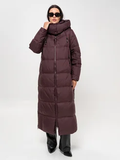 Пуховик с капюшоном и поясом удлиненный зима