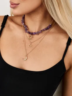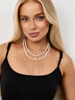Комплект украшений - колье и браслет многослойное золотистое