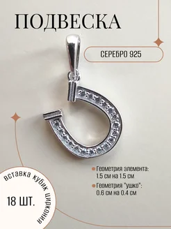 Подвеска подкова из родированного серебра 925 пробы