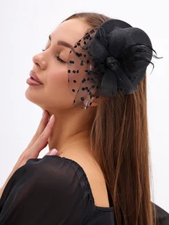 Вуалетка, шляпка с вуалью чёрная вечерняя