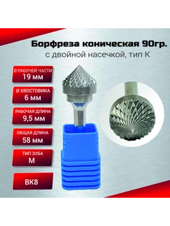 Борфреза коническая 90 гр, тип K 19х6х9,5х58