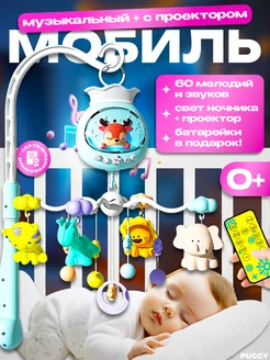 Мобиль в кроватку музыкальный для новорожденных с пультом 0+