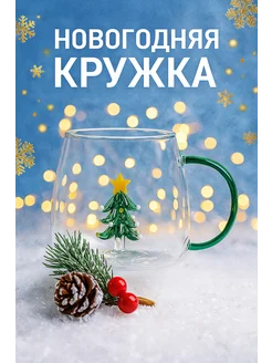 Стеклянная новогодняя кружка с фигуркой елочки на дне
