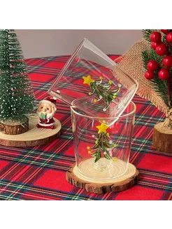Стеклянный новогодний стакан с фигуркой елочки на дне