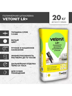 Шпаклевка Ветонит ЛР+ идеально белая на мраморе 20 кг