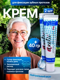 Крем для фиксации зубных протезов нейтральный вкус, 2 шт