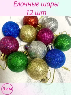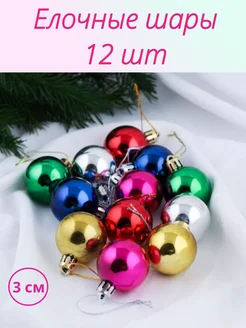 Набор елочных шаров 3 см украшения на елку блестящие 12 шт