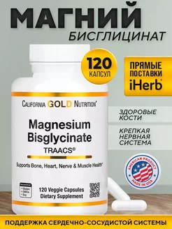 California Gold, Бисглицинат магния, 200мг, 120 капсул