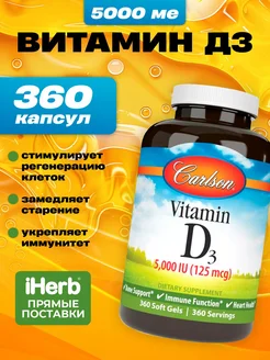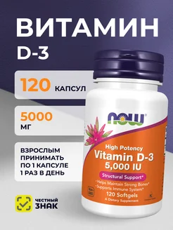 Витамин Д3 NOW, 5000 МЕ (5000 IU), 120 капсул