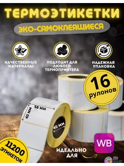Термоэтикетки самоклеящиеся 58х40 16 рулонов