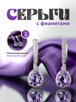 Серьги бижутерия с фианитами и фиолетовым камнем