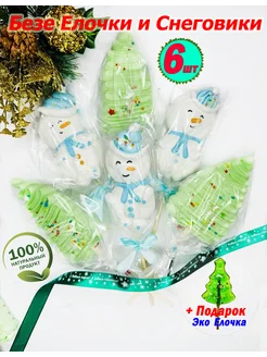 Безе на палочке Елочка и Снеговики 6шт. Новогоднее безе