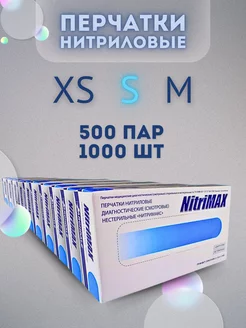 Перчатки одноразовые нитриловые голубые S 500пар 1000шт