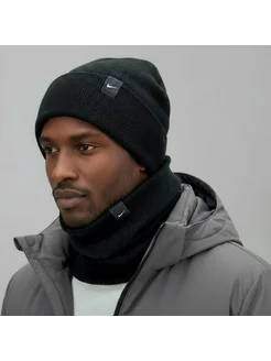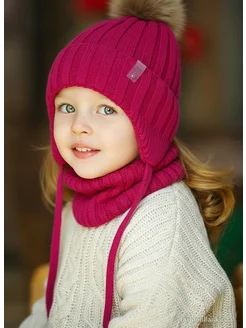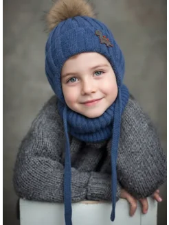 Шапка с помпоном и снуд вязаный теплый зимний комплект