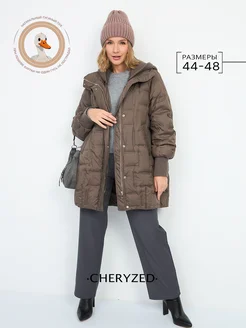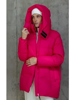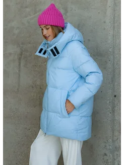 Пуховик зимний с капюшоном оверсайз куртка удлиненная
