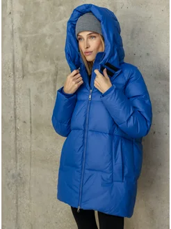 Пуховик зимний длинный с капюшоном оверсайз на молнии