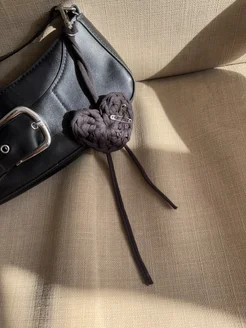 Обвес на сумку сердце с булавками черное вязаный брелок