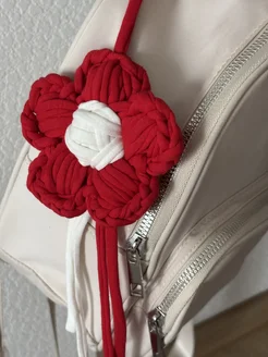 Обвес на сумку цветок красный - белый вязаный брелок