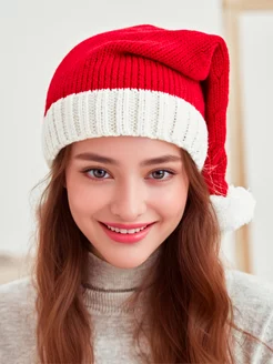 Шапка новогодняя вязаная Колпак деда мороза