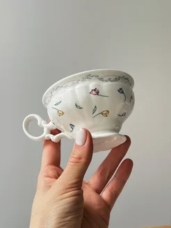 Чайная пара в цветочек чашка 220 мл и блюдце