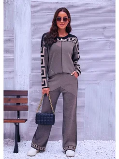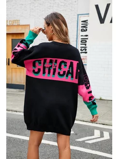 Свитер оверсайз вязаный теплый укороченный с вырезом