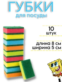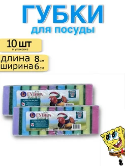 Губки бытовые для мытья посуды разноцветные набор 10 штук