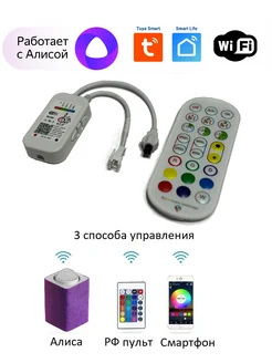 Контроллер RGB 3pin WiFi и ИК пульт tuya работает с алисой
