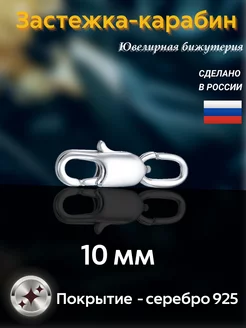 Замочек Карабин для цепочек с серебряным покрытием 10 мм