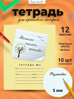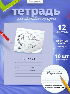 Тетрадь школьная широкая линия с доп. 3 мм, 10 шт
