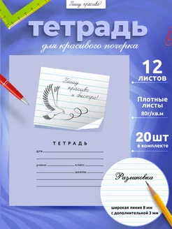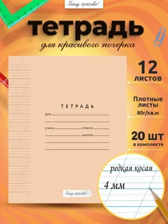 Тетрадь в редкую косую линейку 12 л, 20 шт Мазина В.Д