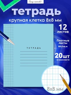 Тетрадь в крупную клетку 12 л, 20 шт оранжевая